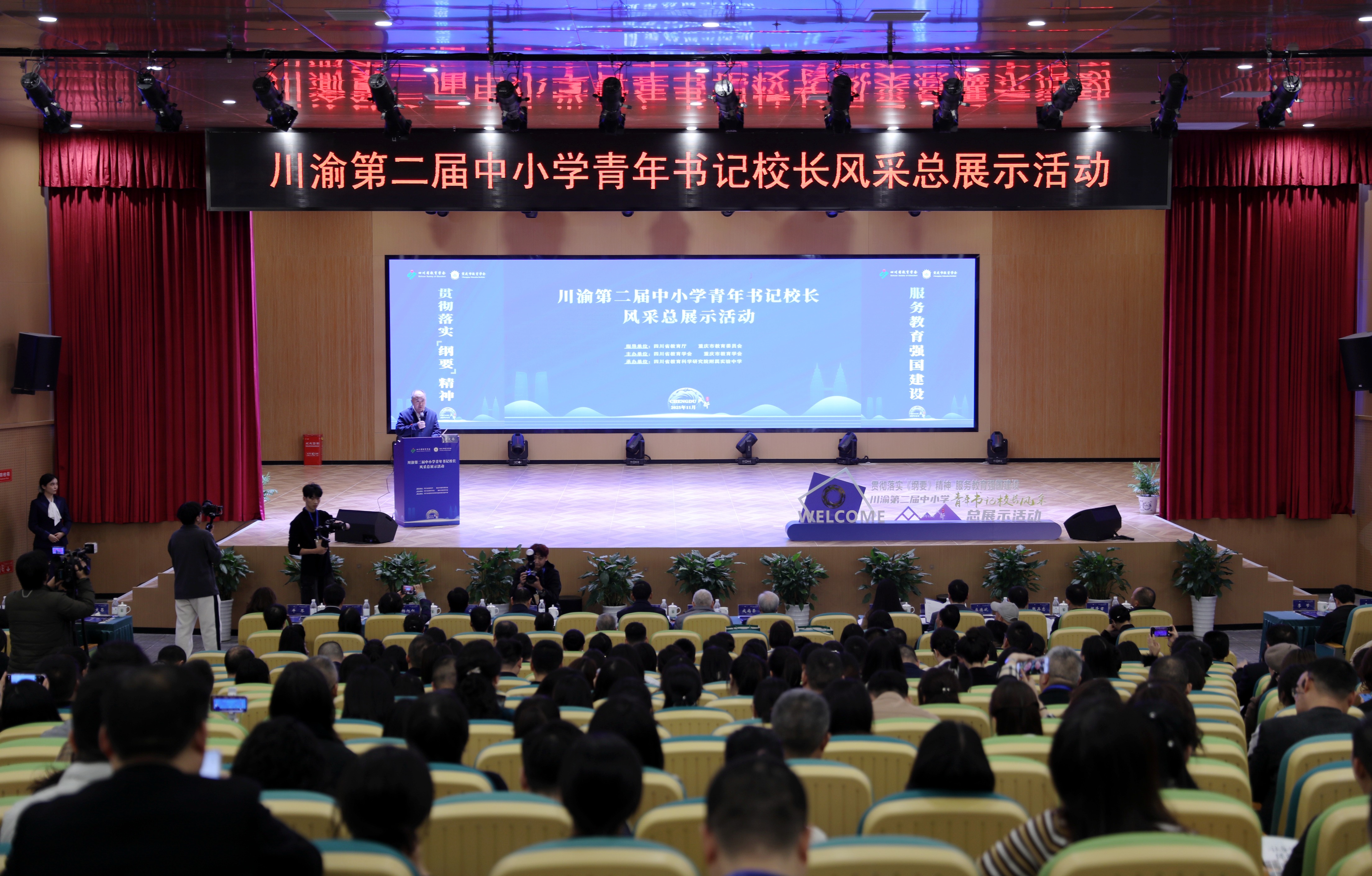 川教融媒 2025-11-14630211月13日,川渝第二届中小学青年书记校长风采总展示活动在成都举行。来自川渝两地的40名中小学青年书记、校长围绕“贯彻落实《纲要》精神,服务教育强国建设”主题,通过主题演讲和现场答辩同台展示风采。四川省教育厅二级巡视员、教师工作处处长何庆出席开幕式并致辞。